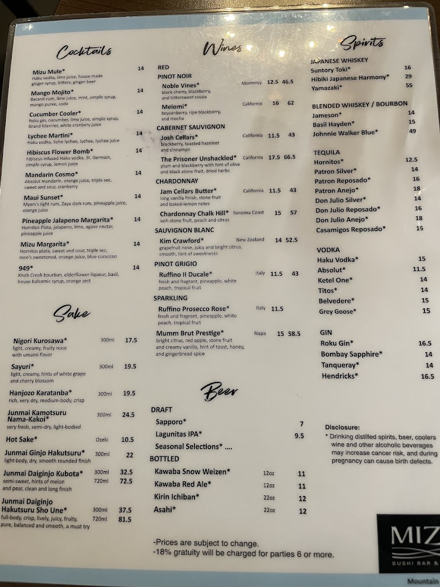 The ambiance is welcoming, and the staff is attentive, ensuring a delightful dining experience. Mizu Sushi Bar & Grill is truly a culinary gem that beautifully encapsulates the essence of sushi.